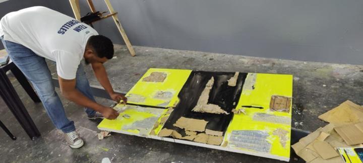 On this Tuesday, all day our Seychellois artist Ryan Chetty accompanied by his mentor Egbert Marday is at the ABA to create his painting which will be judged this Thursday.