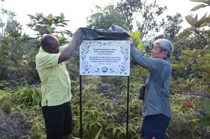 Africa-Press – Seychelles. One of the elders of the Seychelles botanical world, Katy Beaver, has been honoured for her great contributions in promoting and protecting the country’s green environment through a plaque erected at the Tea Tavern Restoration Site at Sans Soucis.