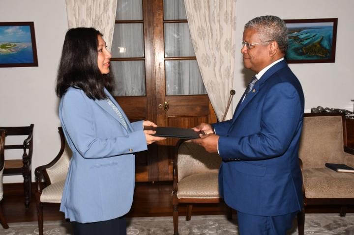 She presented her credentials yesterday morning to President Wavel Ramkalawan at State House.