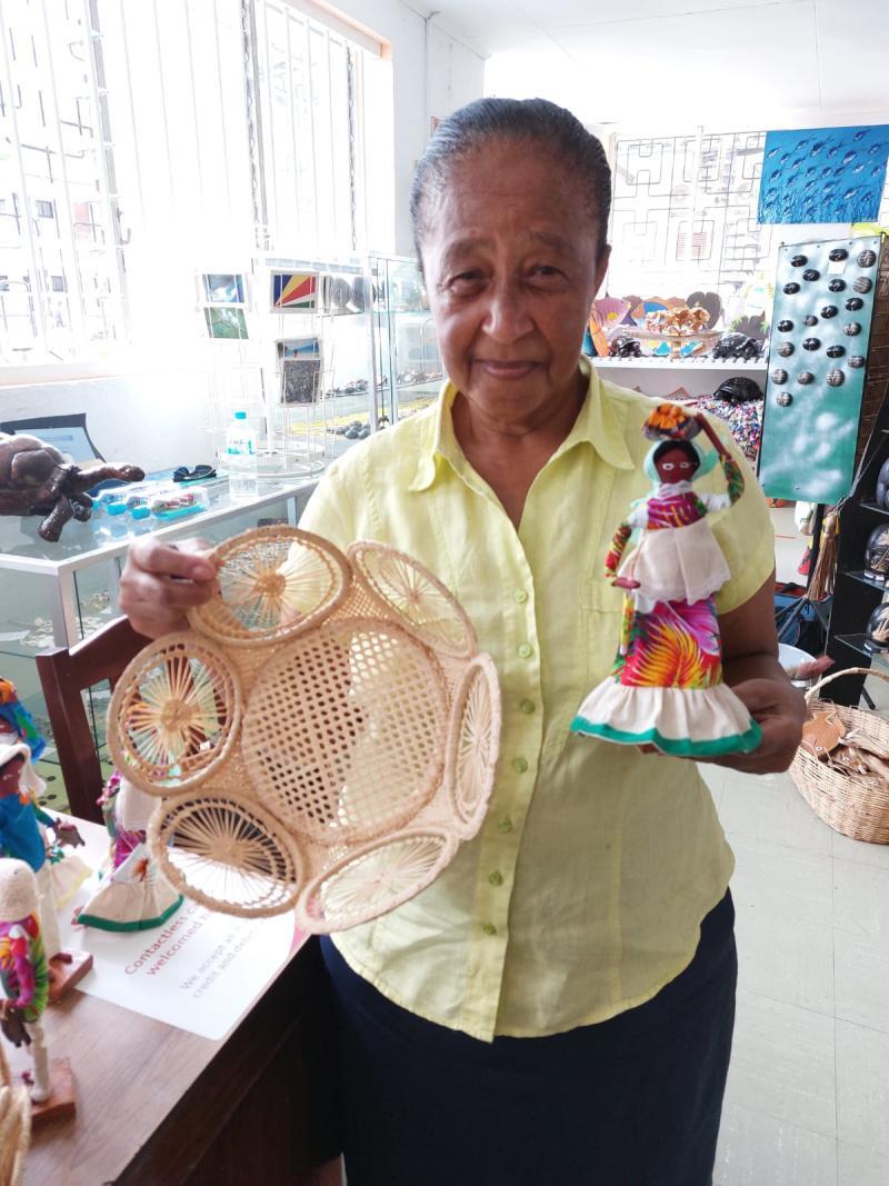 She recalled that after their foreign neighbours left and the doll-making business phased out, most of her friends stopped making them but she continued to do so, thus keeping her newly-acquired skills alive. She also looked for other outlets to sell her products, namely at the then Codevar and gradually at many more other sales point like the Artisans Des Iles souvenir shop opposite the post office in town, the Duty Free, Pineapple Studio as well as at the Victoria Market.