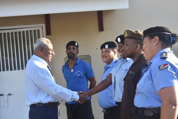 Commencing his rounds at 7am, the minister made eight stops in total, at facilities operated by the Seychelles Fire and Rescue Services Agency (SFRSA), Seychelles Police Force and the Seychelles Prison Services.