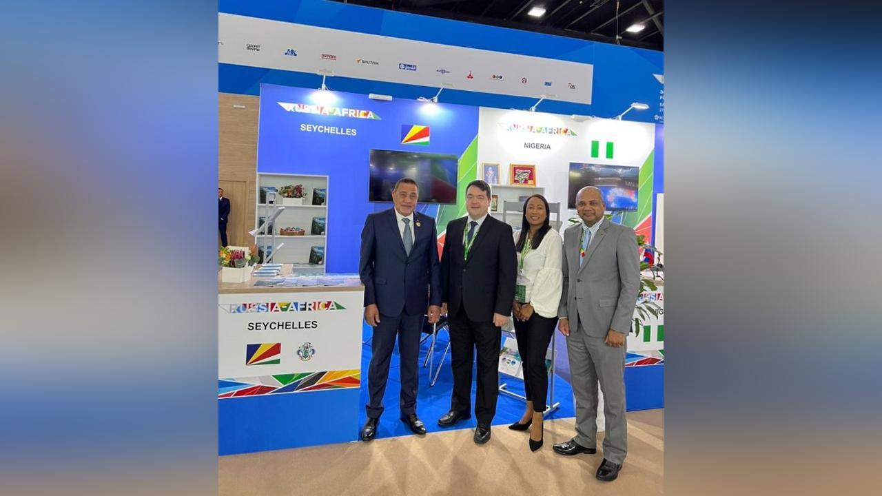 During his stay in St Petersburg, Minister Radegonde also visited the Seychelles Stand at the Expo organised on the sidelines of the Summit where Seychelles was represented by officials from the Tourism department, Lena Hoareau and Anastasiia Bogdanova who are based in Russia.