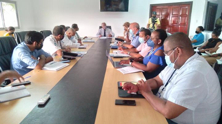 The meeting, which was held at the Pilgrim Security headquarters at Providence, was chaired by the Minister for Internal Affairs Errol Fonseka and it was attended by the Minister for Local Government and Community Affairs Rose-Marie Hoareau, the Minister for Lands and Housing Billy Rangasamy, the Minister for Agriculture, Climate Change and Environment Flavien Joubert. Also present were representatives from different agencies and concerned stakeholders like the Attorney General Frank Ally, Commissioner of Prison Services Raymond St Ange, the Police including Commissioner Ted Barbe as well as the head of visible policing Assistant Superintendent Antoine Denousse, reps of Property Management Company (PMC), Disaster Risk Management Division (DRMD), among others.