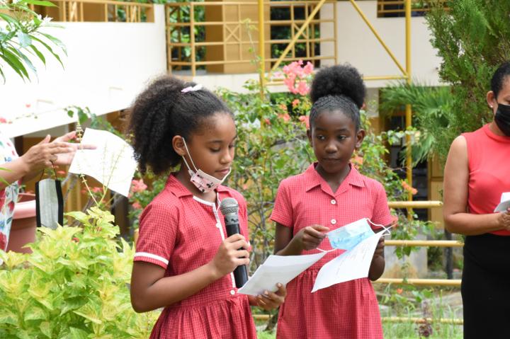 After pupils Julia Pointe and Leah Jean had recited their poems, written for the occasion, entitled ‘The Little Garden’ and ‘Vegetables’, teacher Betty Walters from the eco-club, thanked SNYC and Mr Matombe for partnering with the school to embellish their garden.