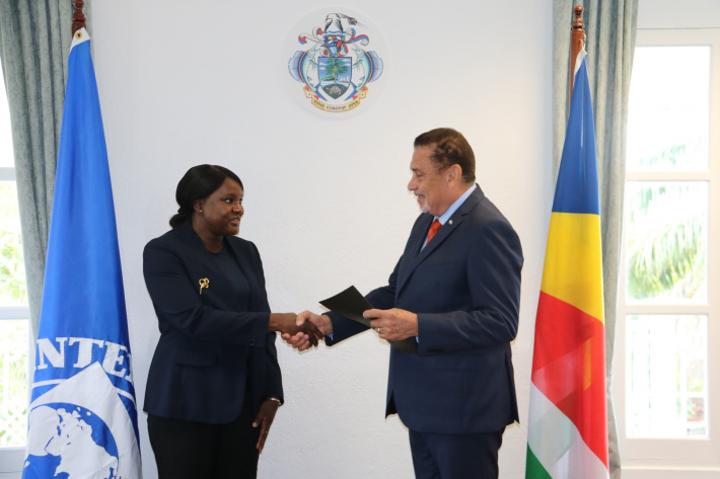 Africa-Press – Seychelles. The new resident representative of the International Monetary Fund (IMF), Aissatou Diallo presented her credentials to the Minister for Foreign Affairs and Tourism, Sylvestre Radegonde, on Monday December 5, 2022 at the Maison Quéau de Quinssy.