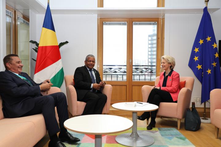 During the meeting, President Ramkalawan and Mrs von der Leyen discussed issues of mutual interest and of value to both Seychelles and the EU, in which they explored new avenues of cooperation such as environment, climate change, ocean governance/blue economy, fisheries, maritime security, law enforcement/cybercrime.