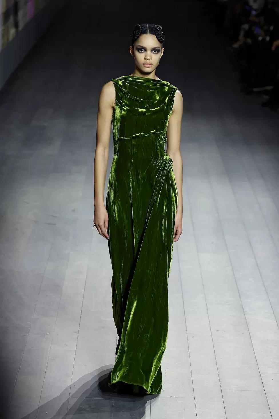 Dior designer Maria Grazia Chiuri paid homage to Josephine Baker with her spring haute couture show, featuring beaded fringes and crushed velvet.