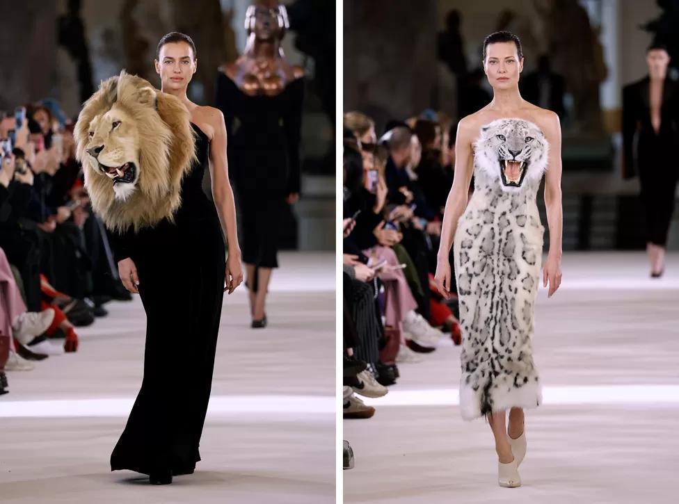 Irina Shaykhlislamova and Shalom Harlow also showed the fashion house’s similar big cat creations, a lion and a snow leopard.