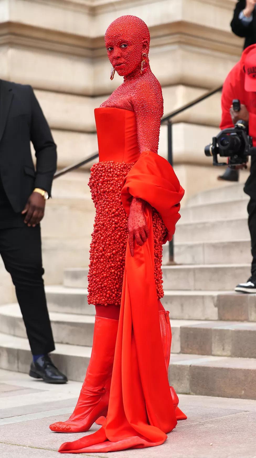 She wasn’t the only audience member to turn heads with her outfit. Doja Cat arrived for the show covered in a reported 30,000 crystals and painted red.