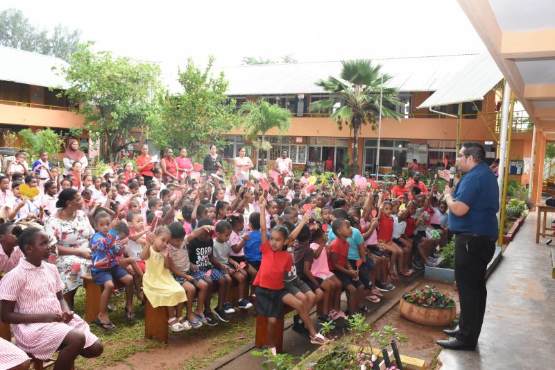 A special assembly was held yesterday morning in the school compound, with pupils from crèche and special guest, Citizens Engagement Platform Seychelles (Ceps) chief executive Alvin Laurence.