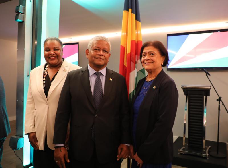 Upon his arrival in the UK, the President also paid a visit to the high commission of the Republic of Seychelles in London where he held discussions with Patsy Moustache, the acting high commissioner (principal counsellor) along with Fanchette Powell, office manager.