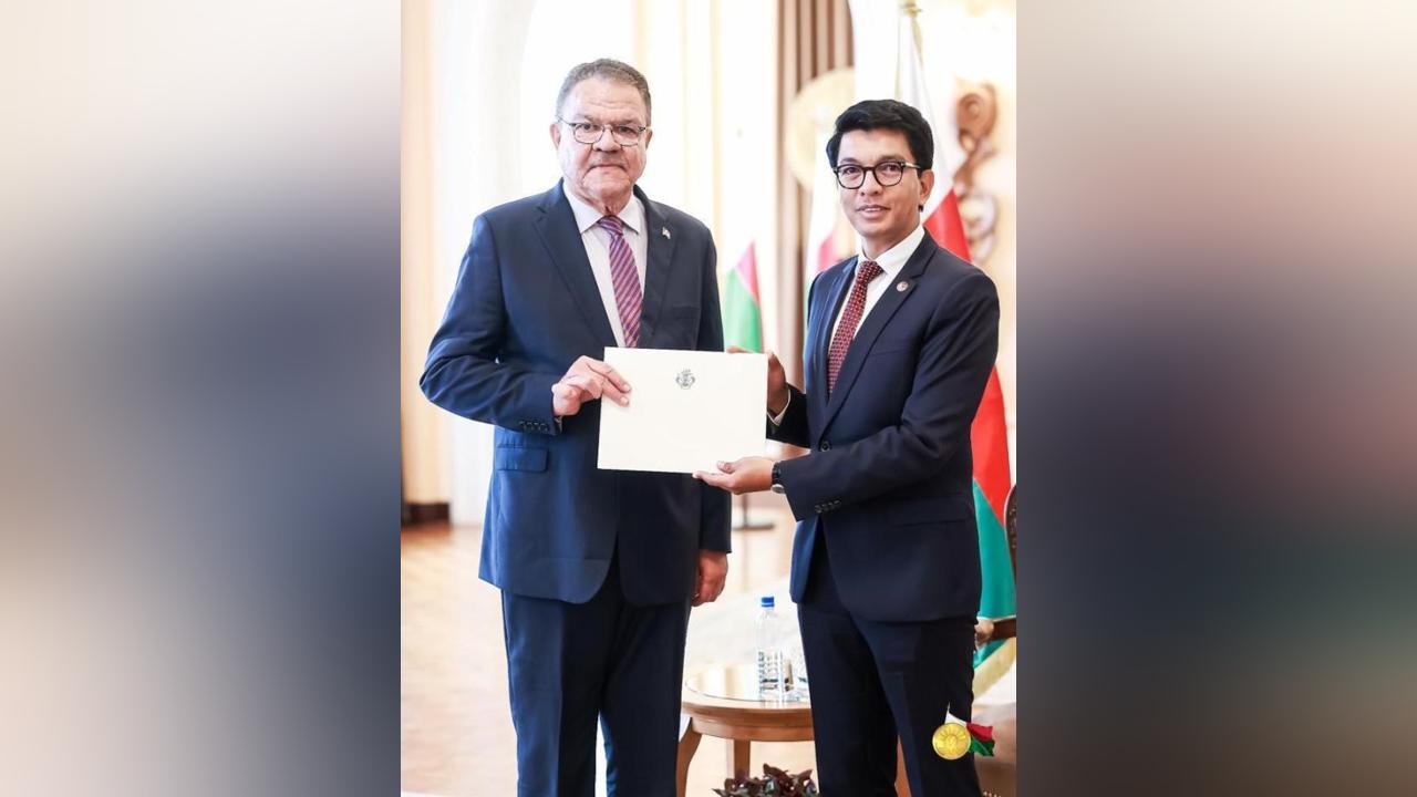 The new Seychelles Ambassador to the sister Republic of Madagascar, Mr. Claude Morel, presented his credentials to the President of Madagascar, Mr. Andry Rajoelina, on Wednesday August 2, 2023, during a ceremony at the presidential palace in Antananarivo, in the presence of the Minister of Foreign Affairs, Mrs Yvette Sylla.
