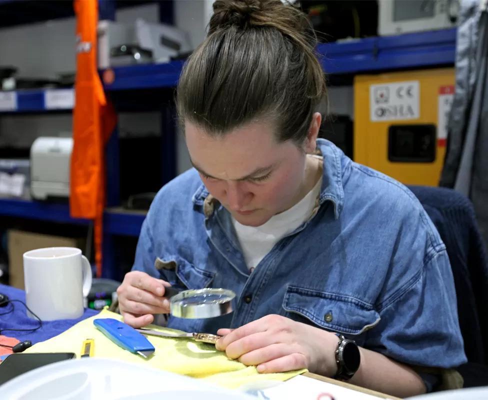 Working with Dermot, they discover that a copper connection has become coated by a layer of carbon from a tiny spark each time the kettle is turned on, causing the switch to no longer work.