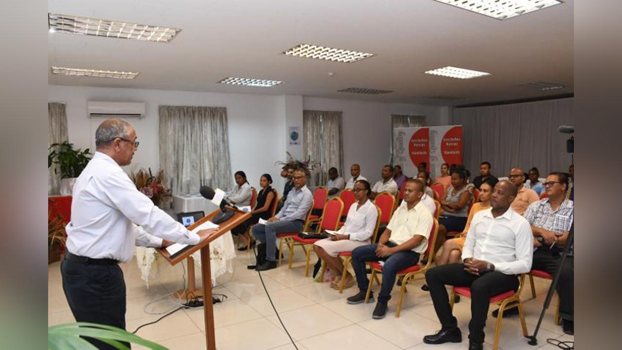 The opening remarks by PS Nalletamby were followed by three PowerPoint presentations by three SBS staff namely Corina Chang-Ty-Sing, who talked about the accreditation process and its benefits, Guillaume Woodcock, who talked about work done to strengthen the fish export industry and to ensure good water quality and Cliff Barra, whose presentation was on the accreditation of coconut oil tests.