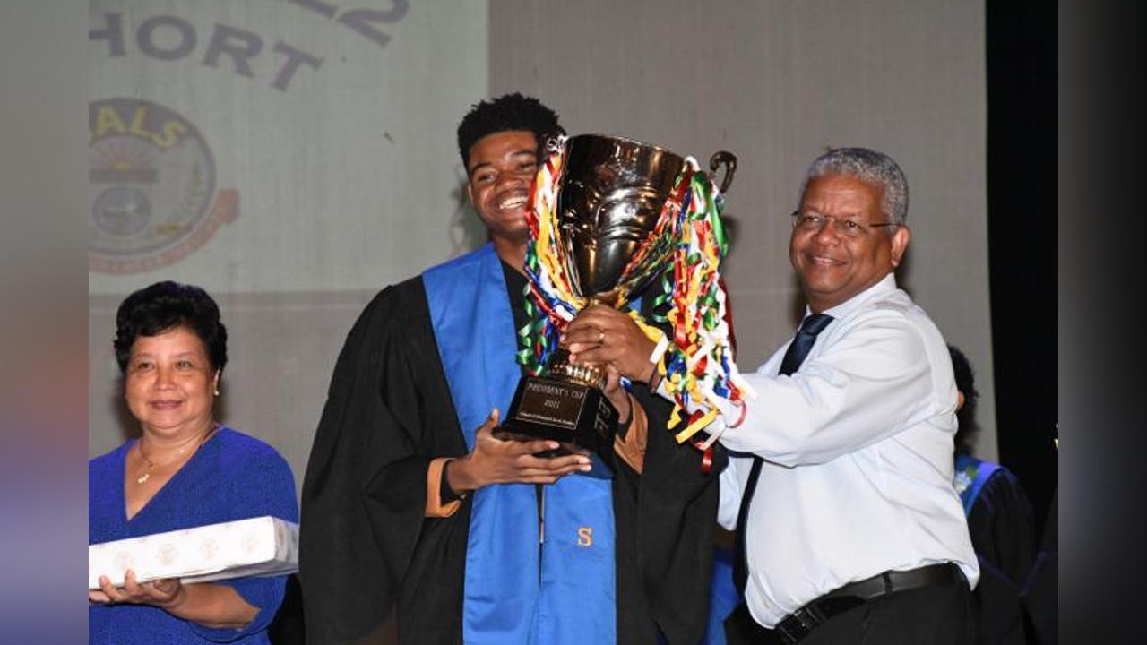 He was presented with his award by President Wavel Ramkalawan and First Lady Linda Ramkalawan during the school’s graduation ceremony yesterday at the International Conference Centre Seychelles.