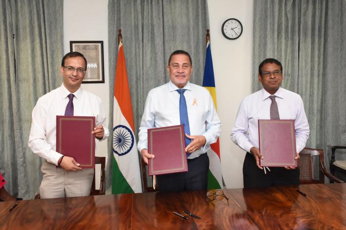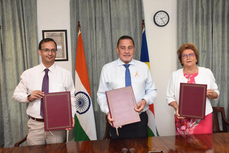 Yesterday afternoon, two memoranda of understanding for the projects were signed at the Foreign Affairs department by the Indian high commissioner, Kartik Pande; the Minister for Foreign Affairs & Tourism, Sylvestre Radegonde; the Minister for Land and Housing, Billy Rangasamy; and the Minister for Local Government and Community Affairs, Rose-Marie Hoareau.
