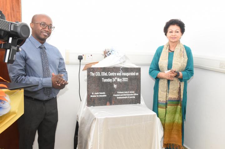 The unveiling of the mobile plaque by the Minister for Education, Justin Valentin, and the President and chief executive of COL, Asha Kanwar, to inaugurate the COL Odel centre, was held in a short ceremony on location at the ministry’s headquarters, Mont Fleuri, yesterday morning.