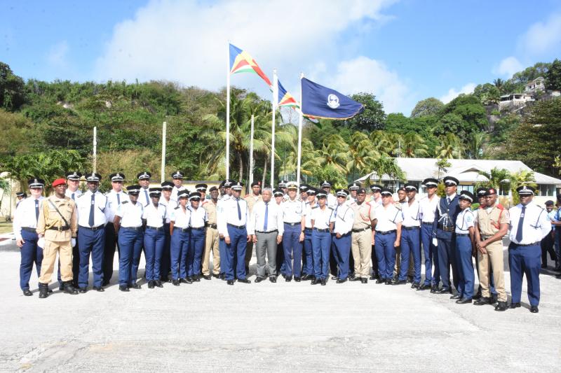 Present for the ceremony were President Wavel Ramkalawan, commissioner of police Ted Barbe, chief of the Seychelles Defence Forces, Brigadier Michael Rosette, deputy commissioners Francis Songoire and Ron Bonnelame, assistant superintendent Vincent Marie (acting commandant of the Seychelles Police Academy), police officers and graduates.