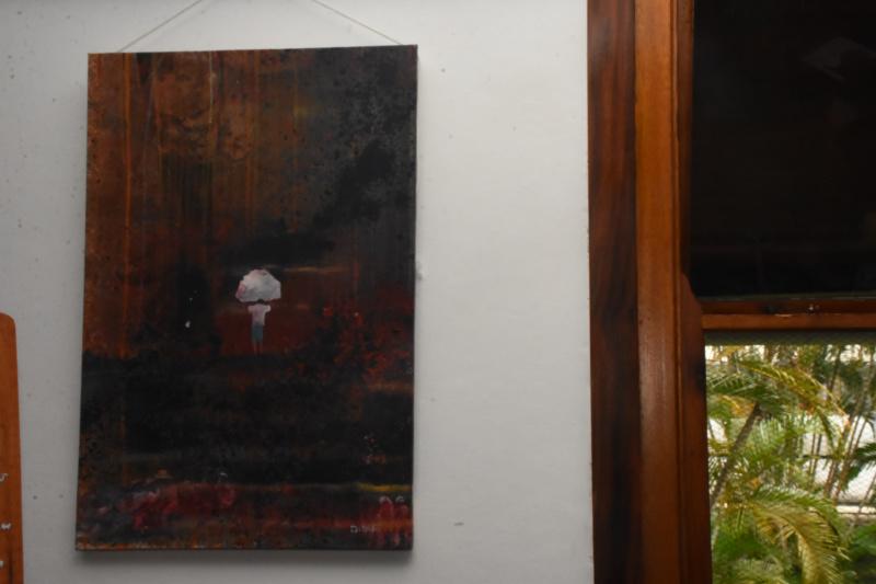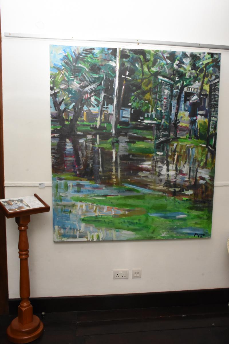 Marc Luc describes his artistic style as bold. He uses abstract expressionism, fauvism and action painting which he discovered during his studies. “My paintings in this exhibition were inspired by the recent wet days. I’ve always admired the reflection resulting from the heavy rain by the school compound.”