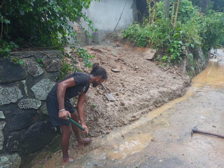 Africa-Press – Seychelles. Due to heavy rains Seychelles experienced over the weekend, a situation arose at Sorento where heavy water and red earth came down a drain onto the main road causing difficulty for road users.