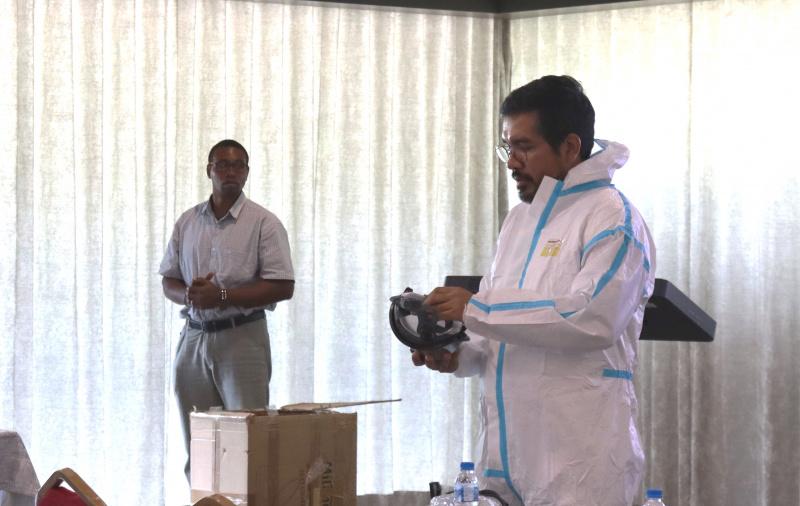 A half-day training was conducted recently by an international consultant, Rogelio Martinez, and national consultant Bobb Petrousse on how to use and dispose of equipment and containers of pesticides.