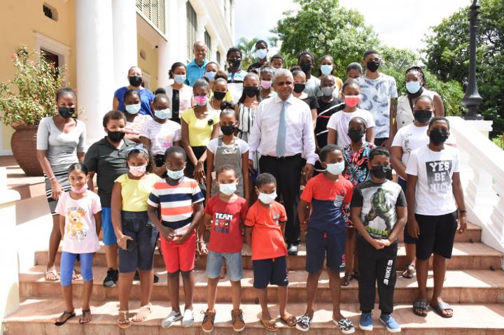 President Wavel Ramkalawan took time out of his busy schedule to welcome and interact with the group of visitors.