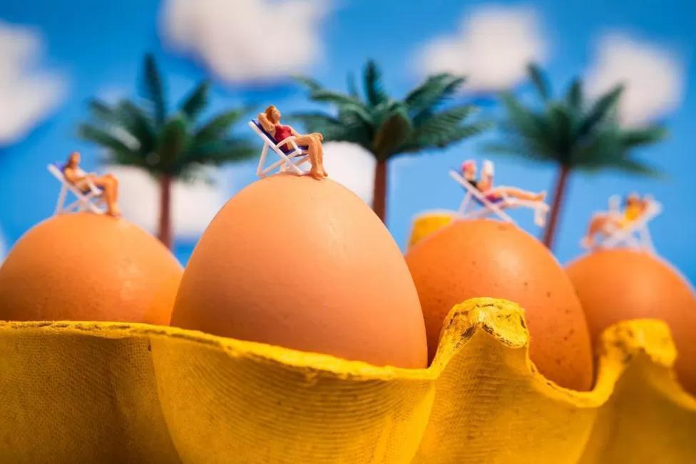 But instead David took a picture of the familiar blue face masks that were worn everywhere during Covid and reimagined it as a swimming pool with tiny figurines enjoying vacation activities around it.