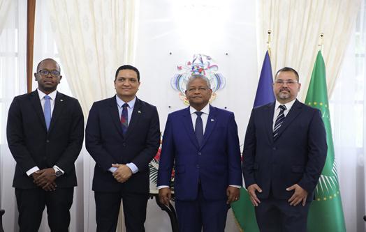 Also present at State House was the Vice President of the Republic, Mr. Ahmed Afif, the Minister for Foreign Affairs and Tourism, Mr. Sylvestre Radegonde, the Secretary of State for Cabinet Affairs, Mr. Mohammed Afif, and the Principal Secretary for Foreign Affairs, Ambassador Vivienne Fock-Tave.