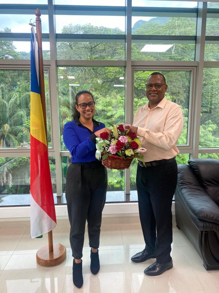 For this noteworthy academic achievement, Minister Antony Derjacques took time out of his busy schedule to personally congratulate Ms Ah-Shung and express his joy by saying “the ministry is proud of your achievements and wishes to extend this small token of appreciation to you. You made the ministry proud and we look forward to see more of your achievements with us.”