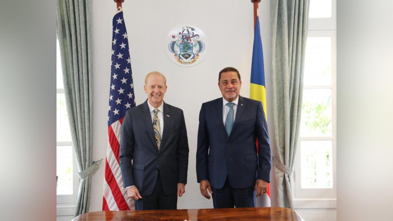 Africa-Press – Seychelles. Issues relating to the establishment of the US embassy in Victoria, law enforcement, and the ongoing conflict in Sudan were among the topics discussed during a meeting between the Minister for Foreign Affairs and Tourism, Sylvestre Radegonde, and the Ambassador of the United States of America to Seychelles, Henry Jardine held on Friday May 12 at Maison Quéau de Quinssy