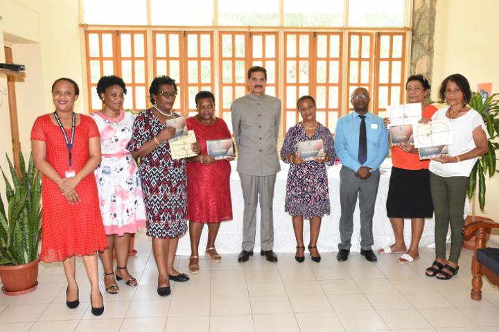 They all received a trophy presented by Education Minister, Dr Justin Valentin, a gift sponsored and presented by Indian High Commissioner, General Dalbir Singh Suhag, and a certificate presented by principal secretary for education services, Merna Eulentin.