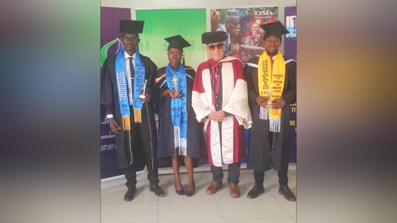 Similarly, Francis Foday Kamara and Ibrahim Conteh-Moi, who both graduated with BSc Economics and Bachelor of Business Administration-Human Resources Management respectively, were inspired by a previous recipient of the AATF award. The two males had the same FGPA of 4.66 and both achieved Distinction in their project and internship. They acknowledged that the road to success was challenging, as they had to compete with experienced and hard-working students, but they were determined to succeed.