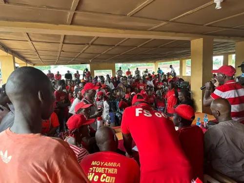 In addressing thousands of supporters in Bradford, Moyamba District, Alhaji Dauda Galaxy disclosed that the June 24 2023 election is about saving the soul of Sierra Leone against all odds, citing the weak economy, the divides, the injustice, threat to freedom, etc.The former young Commissioner said that Dr. Samura Kamara is the only person who can and is able to fix the present economic problems which the country is facing as a result of incompetent and failed governance.