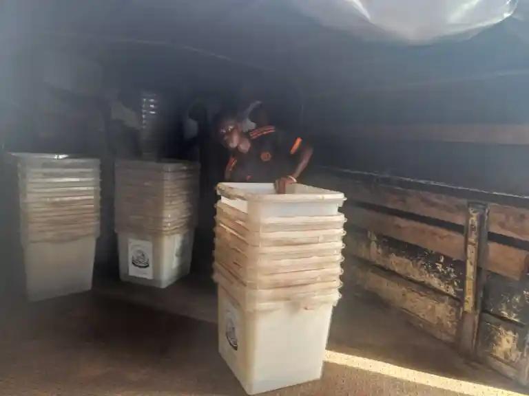Africa-Press – Sierra-Leone. The Electoral Commission for Sierra Leone (ECSL) received 11,000 empty ballot boxes from the Government of Guinea on Saturday, May 27th at the Fereciah Military Base in Guinea.