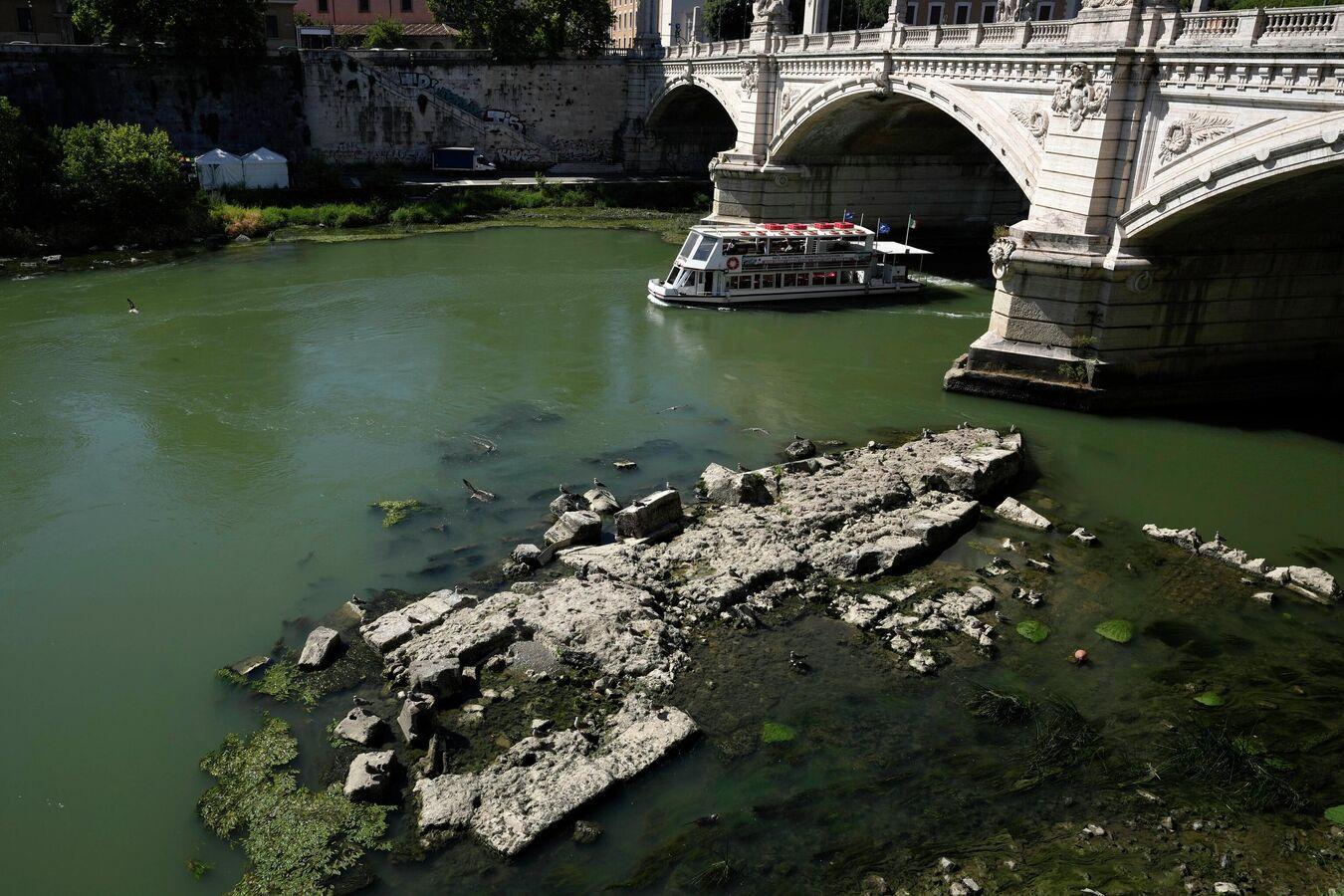 In heatwave-hit Rome, the Tiber River exposed the ruins of a bridge built under Emperor Nero, who ruled from 54 AD until his suicide in 68 AD. The bridge, which connected the Field of Mars with the opposite bank of the Tiber, was demolished in 500 to prevent the Goths from entering and vandalizing Rome. Since, it has been resting under the waters of the Tiber, reappearing only in rare cases when the river becomes critically shallow. The current water level in the Tiber River has reached its lowest in about half a century due to the ongoing drought.‘