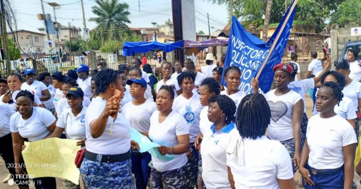 Africa-Press – Sierra-Leone. Director of the Sierra Leone Police Family Support Unit who also doubles as the Sierra Leone Police Female Leader in the Southern Region had on Saturday 20th May, 2023 teamed up with SLP females in the South Region to spread out non-violence campaign and violence against women ahead of the June 24th, 2023 Multi-tier General Elections.