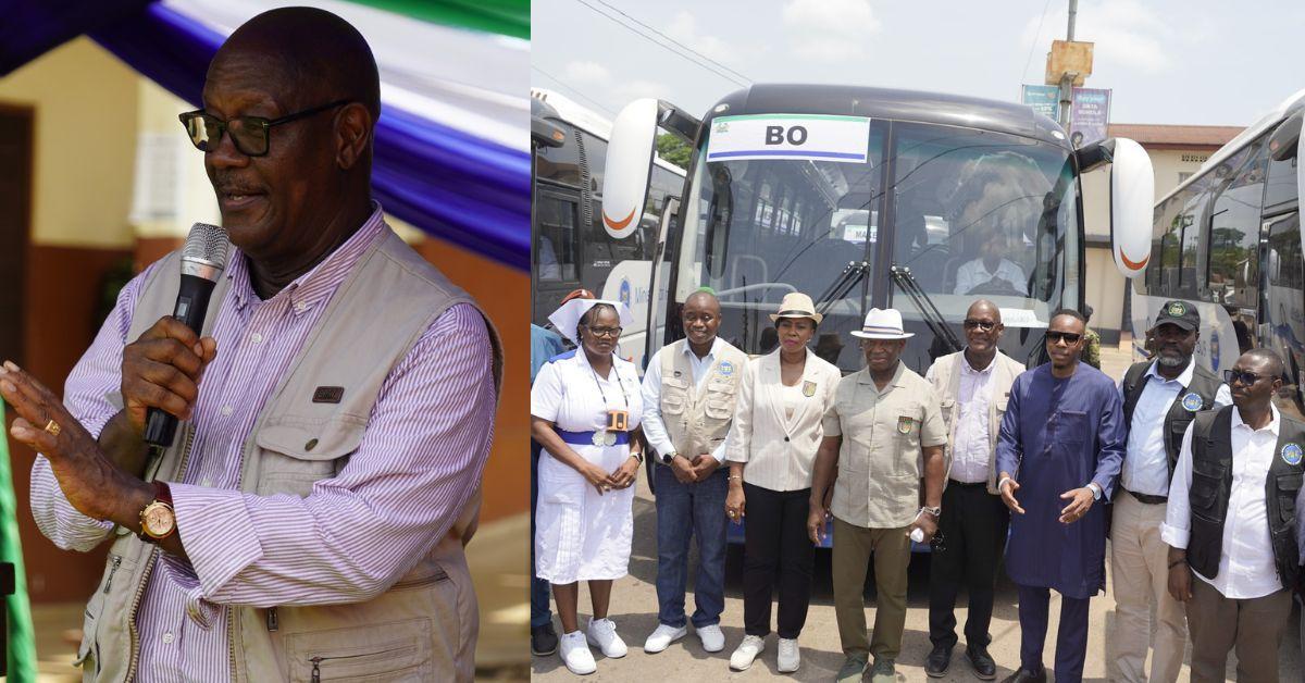He made these remarks in Bo during an official commissioning ceremony led by President Julius Maada Bio. The event marked the rollout of 10 new staff buses, 450 motorbikes, a mobile garage for vehicle maintenance, and nine utility vehicles to facilitate the movement of health personnel across the country.
