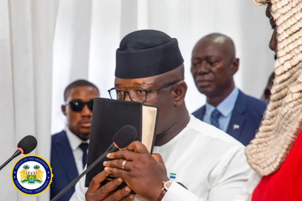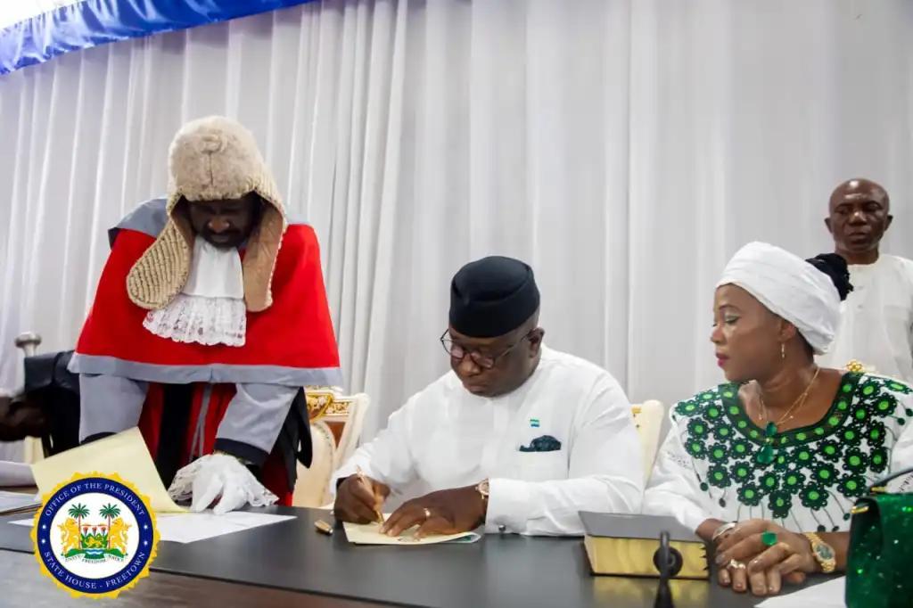 Africa-Press – Sierra-Leone. His Excellency President Dr Julius Maada Bio has sworn to the Oath of Office of the Presidency after winning on the first ballot in the 24 June 2023 elections, thanking voters and extending open hands to the opposition All People’s Congress leadership to kickstart his inclusive governance agenda.