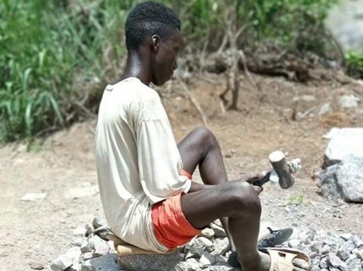 Senesie spent nine hours in the quarry daily to crush stones using a hammer. He says he reports to the quarry at 8am and returns home at 5pm. He said has never been to school even though successive governments in Sierra Leone have implemented free primary education for the past 15 years.