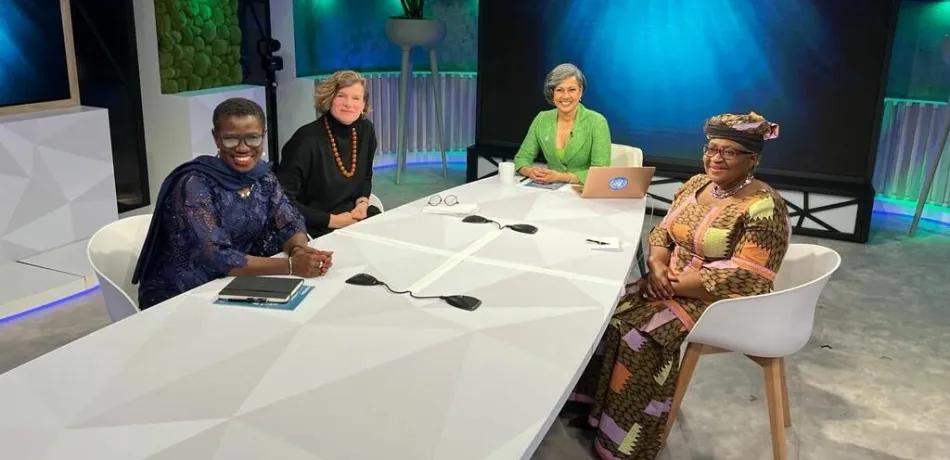 The Commission presented its preliminary report – “Turning the Tide – A Call to Collective Action” at the conference.Speaking about the conference, Aki-Sawyerr said she was pleased to discuss the report in the UN Talk Show, alongside the Commission’s co-chairs Dr Ngozi Okonjo-Iweala and Prof Mariana Mazzucato of UCL (Photo below), joining other members of the Commission to present key elements of the report at a High-Level Event attended by the President of the General Assembly.“Today I attended an event with the first female President of the Republic of Slovenia Nataša Pirc Musar. We had an inspiring conversation about the significance of the global water crisis to women all over the world and how important it is for women to lead global and local responses to the crisis.