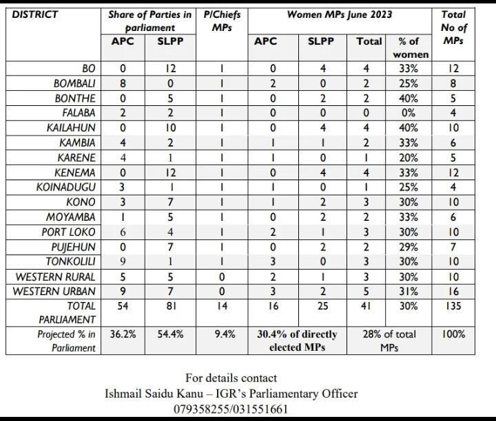The IGR’s analysis also highlights a positive development in terms of gender representation in parliament. It reveals that the participation of women has increased by 15%, with both Kailahun and Bonthe Districts recording a 40% representation of women. This significant boost in female participation is seen as a positive step forward for the political landscape of Sierra Leone. Furthermore, it is noted that women account for 30.4% of the 135 directly elected members of parliament.