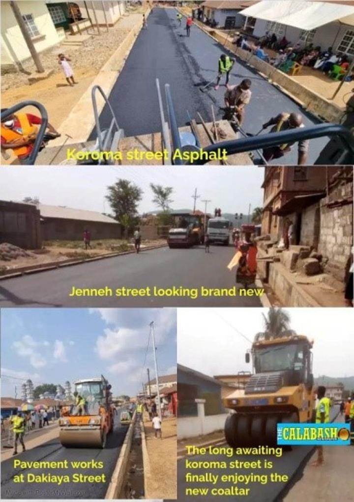 He informed that 85% work has been done at Ferry Junction, that ongoing work at Congo Cross is virtually completed and that at Lumley it is only the asphalt work that should be done also stating that intense work is taking place in Port Loko but 90% of work has been completed and that the reconstruction of the Kabala-Kurubola-Kono Road Project (261Km) was recently awarded to Pavi Fort.
