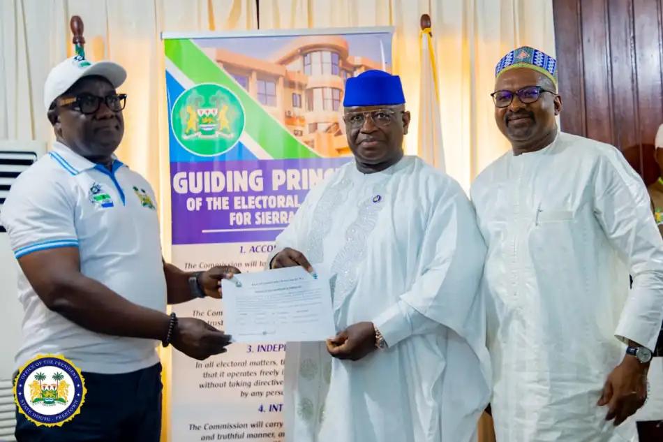 The nomination process which took place at the Electoral Commission of Sierra Leone, ECSL, started after President Bio had earlier completed and signed the online form and the portal had verified and approved that the candidate had certified his willingness to stand for elections to the office of the President of Sierra Leone.