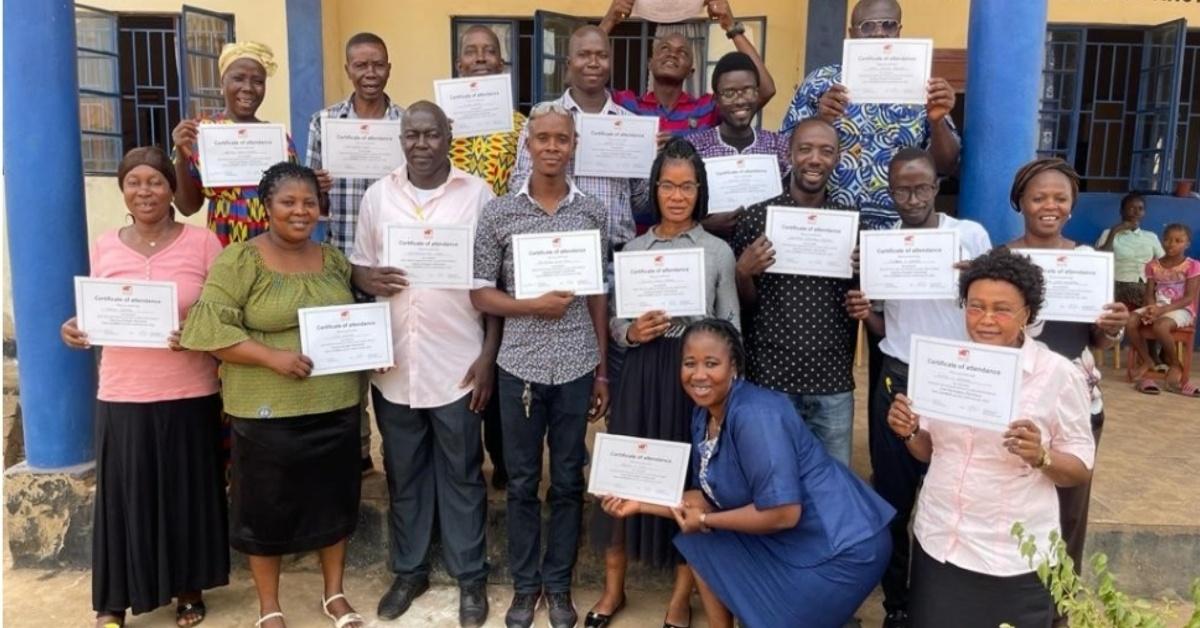 The three days teachers training workshop was climaxed in both Kambia and Moyamba with the distribution of certificates, cupboards, books (locally published and UK donated books), ledgers, hand wash stations, cartoons of soaps and other assorted reading materials.