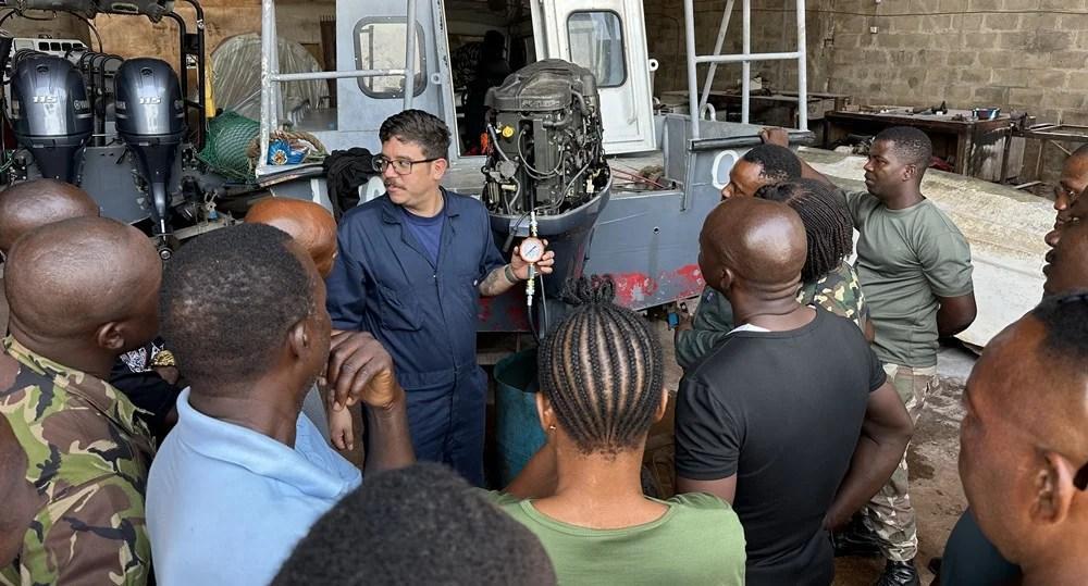A delegation from the U.S. Coast Guard’s (USCG) International Mobile Training Branch, based in Yorktown, Virginia, gave classroom lectures and practical lessons on maintenance procedures on various boat engines with the goal of enhancing the readiness of the Navy and Maritime Police.