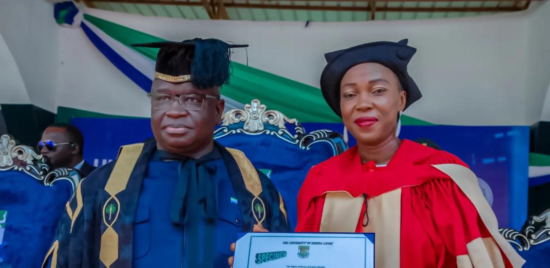 University of Sierra Leone conferred Honorary Doctorate Degree to First Lady Fatima Bio 2023-04-16 56 University of Sierra Leone conferred Honorary Doctorate Degree to First Lady Fatima Bio Africa-Press – Sierra-Leone. . For More News And Analysis About Sierra-Leone Follow Africa-Press