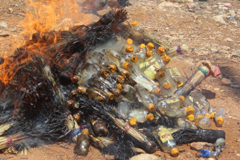 وأحرقت الجهات الأمنية الخمور في مكان عام بحضور مسؤولين من المحافظة ، بمن فيهم عمدة المدينة، ورئيس محكمة المحافظة، وقائدي شرطة المدينة والمحافظة.