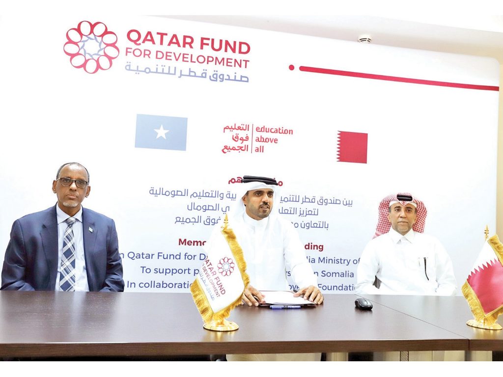 الصومال – افريقيا برس. وقع صندوق قطر للتنمية مذكرة تفاهم مع وزارة التربية والثقافة والتعليم العالي لدعم مشروع مؤسسة التعليم فوق الجميع لتوفير التعليم الابتدائي النوعي لـ 57 ألفًا و600 طفل صومالي.