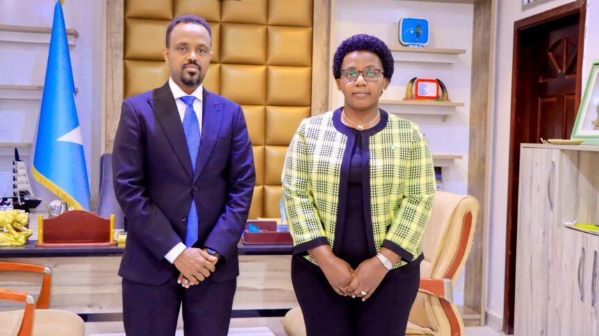 أفريقيا برس – الصومال. استقبل عبد الرحمن يوسف العدالة نائب وزير الإعلام والثقافة والسياحة اليوم في مكتبه بالعاصمة مقديشو، الدكتورة كارولين أسيموي، السكرتيرة التنفيذية للجنة اللغة السواحيلية التابعة لمنظمة التعاون الاقتصادي لشرق أفريقيا، وذلك لبحث سبل التعاون في نشر وتطوير اللغة السواحيلية في الصومال.