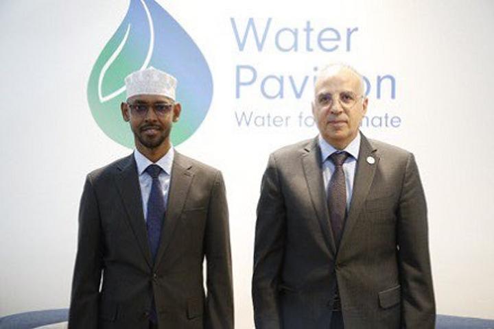 وأكد معالي جامع تقل عباس على دعم البلاد لـ “مبادرة التكيف مع التغيرات المناخية في قطاع المياه” والتي أطلقتها مصر رسمياً خلال “يوم المياه” الذى عُقد يوم ١٤ نوفمبر الجارى ضمن فعاليات مؤتمر المناخ ، مشيراً لرغبة الصومال في قيام مصر بتوفير المزيد من الدورات التدريبية للجانب الصومالى لرفع قدرات العاملين في قطاع المياه من الصوماليين لمواجهة التحديات المائية .